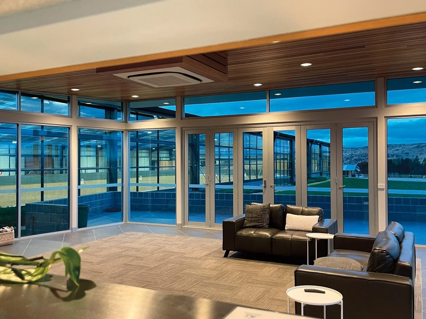 The centre has a riders’ lounge and amenities, a commercial kitchen, a multipurpose office, and an elevated spectator terrace. There is provision for external washdown bays and 20 short-term pens adjacent to the float parking. The site also accommodates stables and associated facilities for a private equine stud.